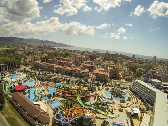 - Через дорогу — один из крупнейших аквапарков Болгарии, где развлечения найдут и взрослые, и дети.