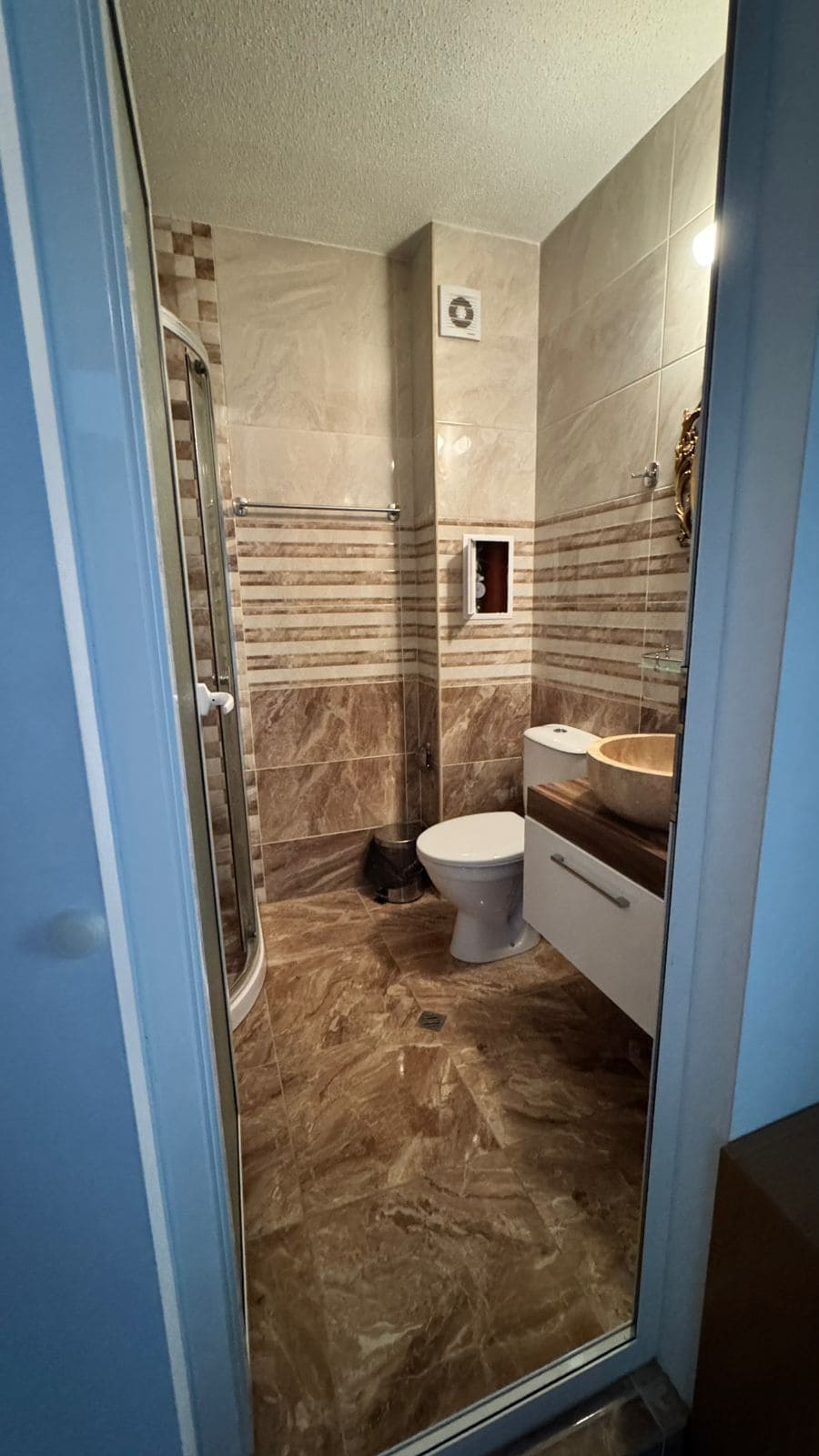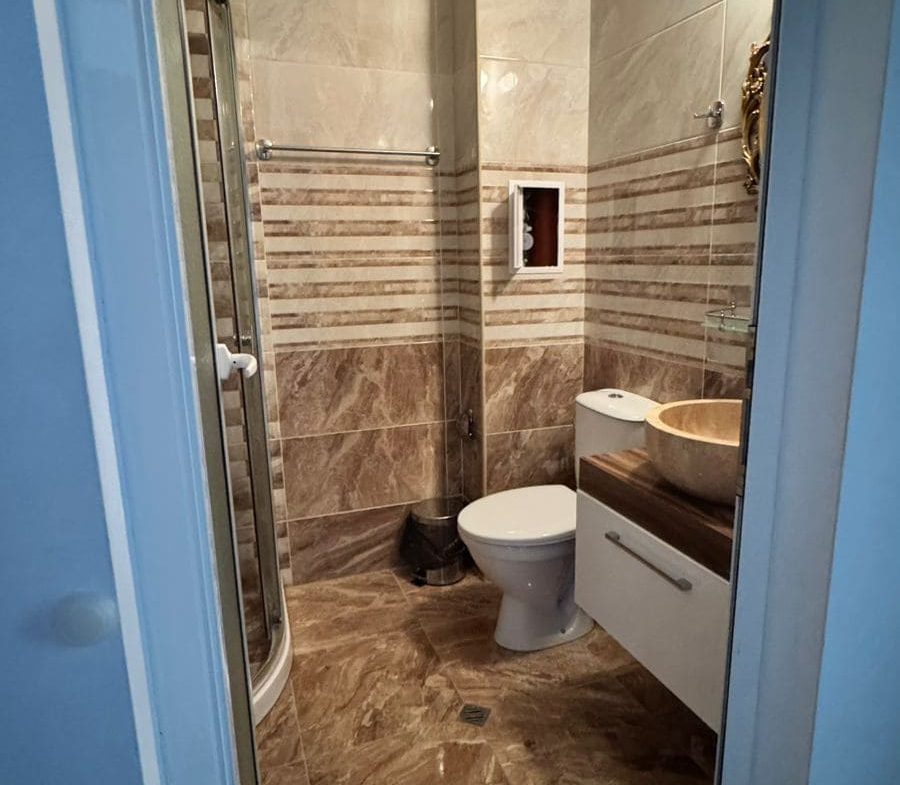 Санузел совмещенный ванная/туалет, оборудован душевой кабиной.