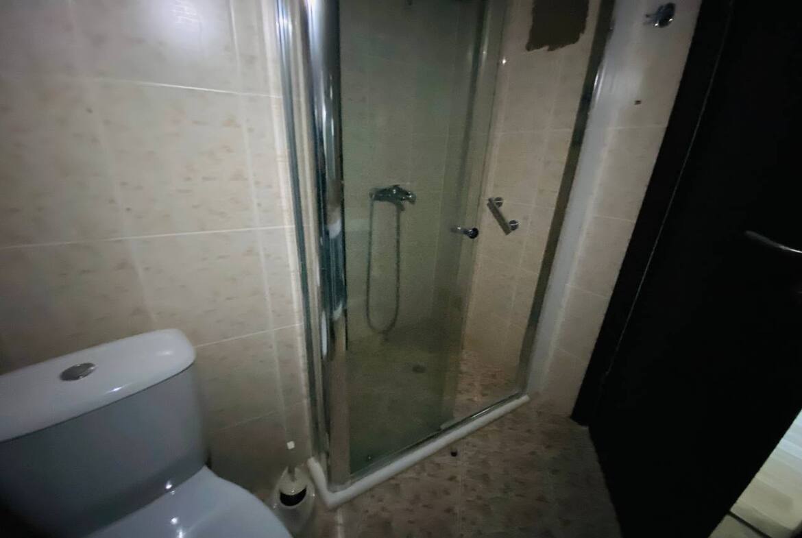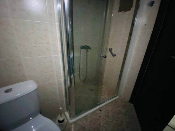 Большой совмещенный санузел с оборудованной душевой кабиной и встроенным феном.