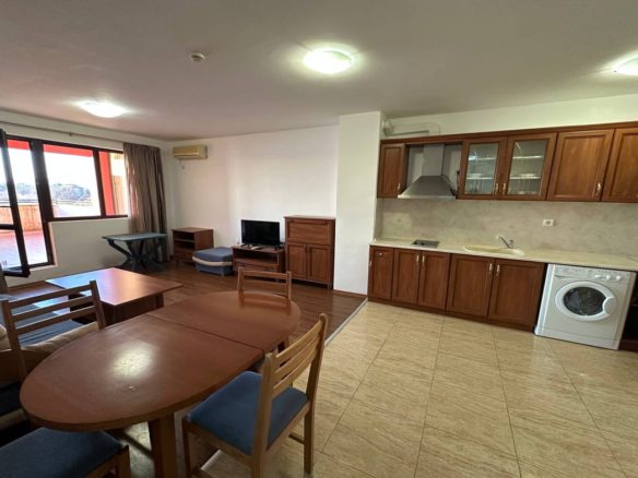 Зал с зоной кухни + две спальни , один санузел с ванной и бойлером, балкон с видом на морскую бухту. Комнаты оборудованы кондиционерами. Зона кухни оборудована бытовой техникой.