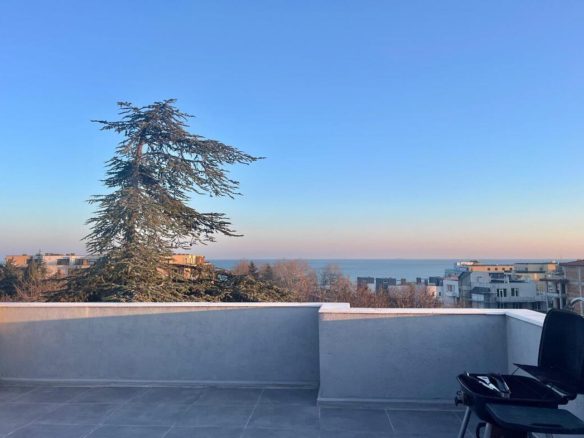 3-х комнатный апартамент с 2-мя спальнями и большой видовой террасой. 5 этаж . Вид на море.