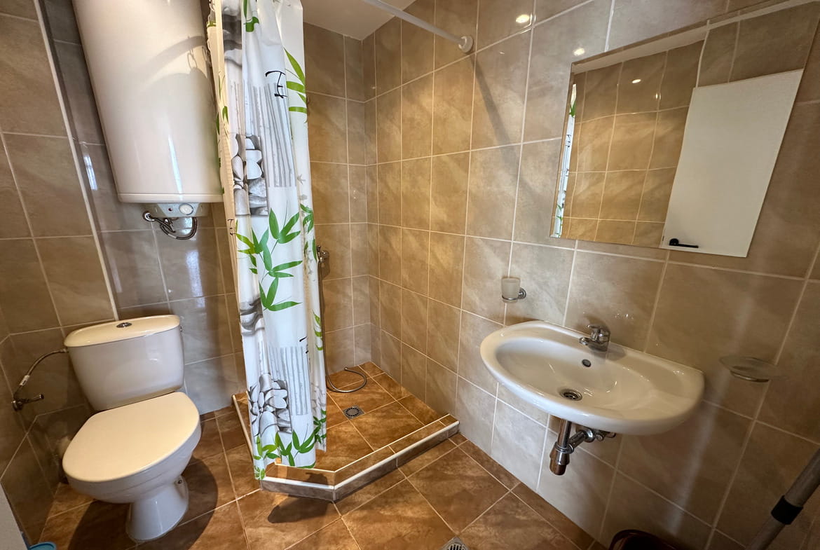 Совмещенный санузел с душевой кабиной. Установлен кондиционер и бойлер.