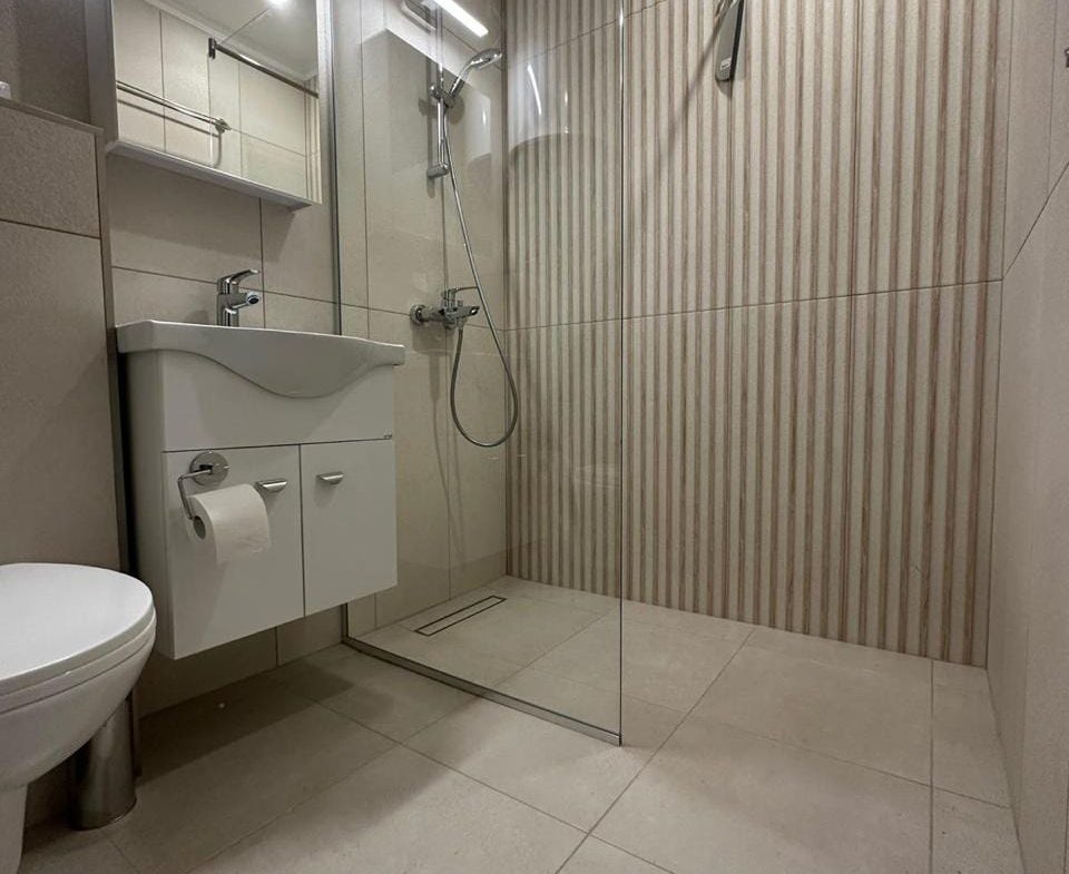 Совмещенный санузел с душевой кабиной.