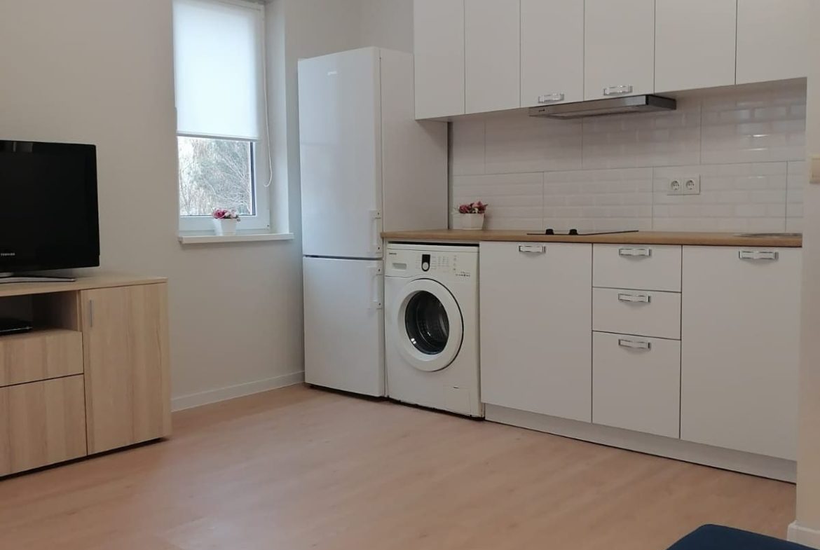 – Комната с зоной кухни (гарнитур, стиральная машина, электроплита, вытяжка, холодильник)