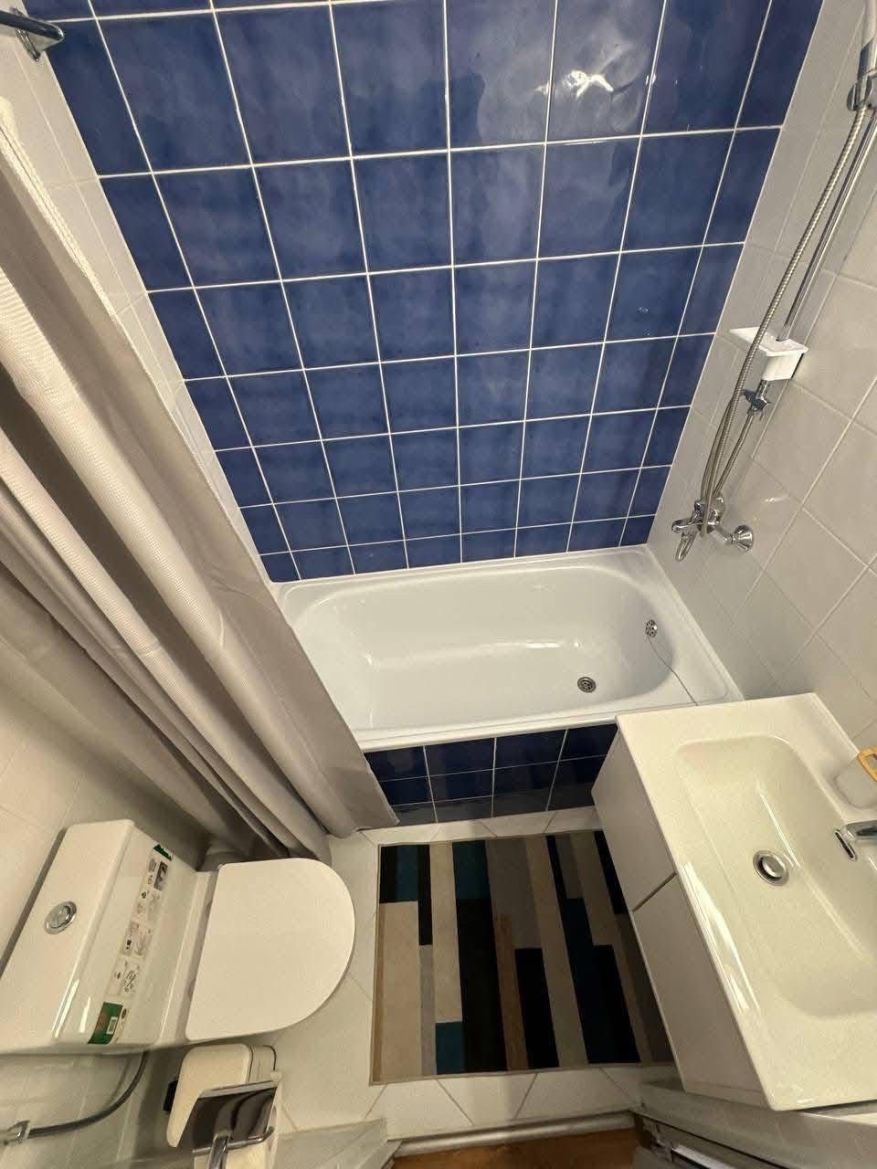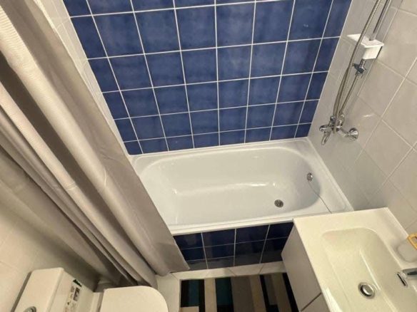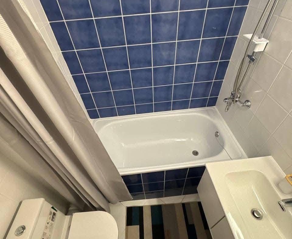 Совмещенный санузел ванная/туалет оборудован ванной, установлен бойлер.
