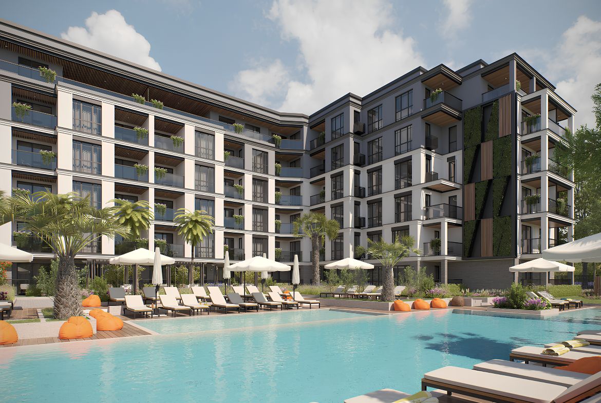 Участок застройки уже с двумя сданными ранее домами : Emilia Romana Boutique и Emilia Romana Park, общая территория с новым домом и доступность всех клубных услуг и общей инфраструктуры всего комплекса: