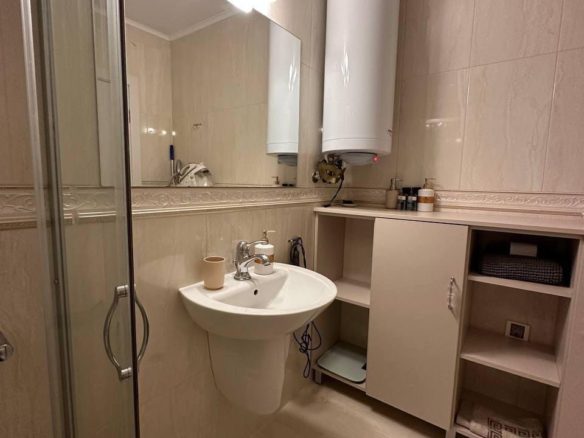 Совмещенный санузел с душевой кабиной, установлен бойлер.