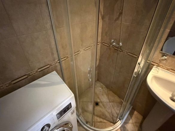 Объединенный санузел ванна/туалет оборудован душевой кабиной.