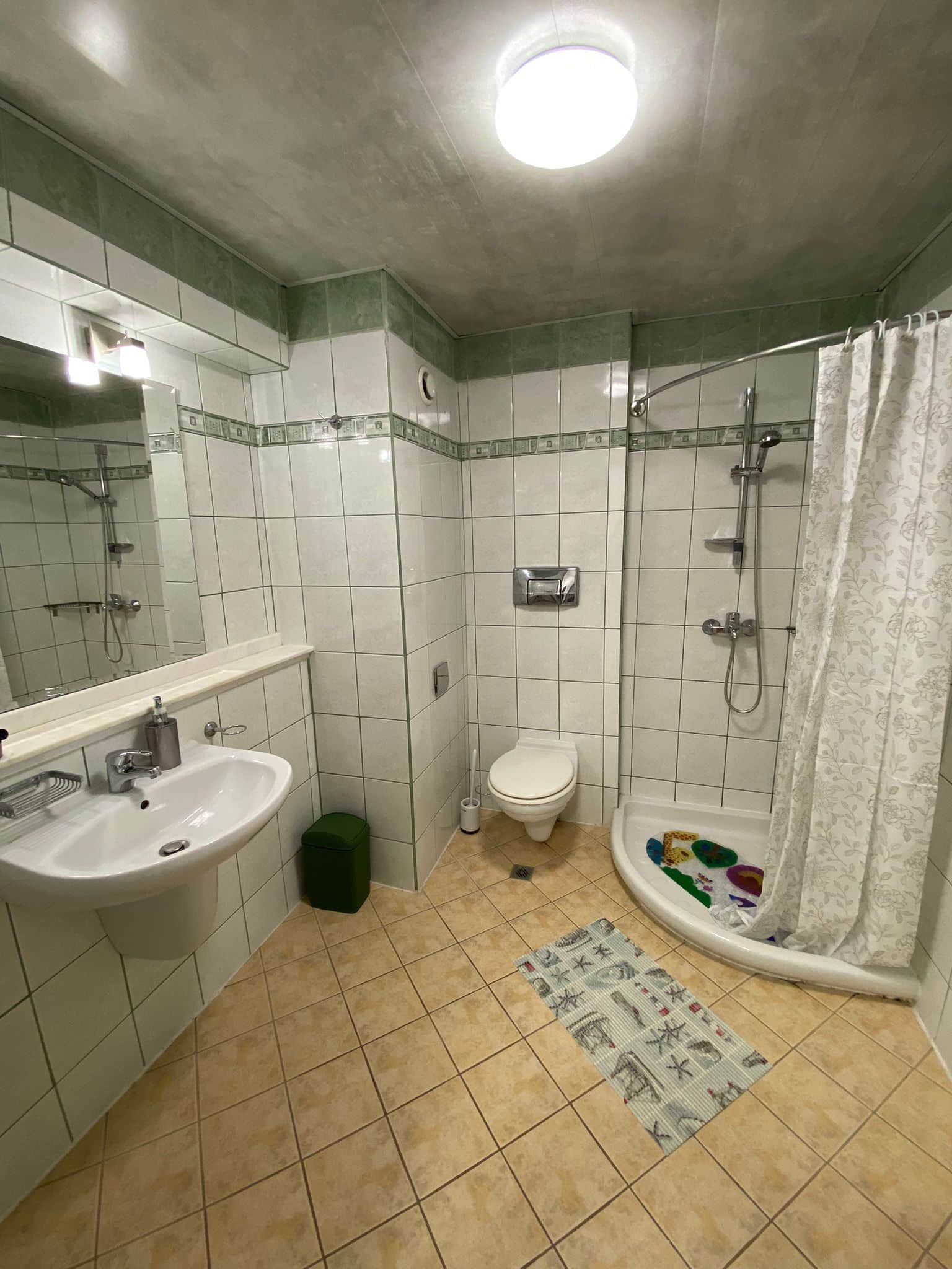 Совмещенный просторный санузел оборудован душевой кабиной. Установлен бойлер.